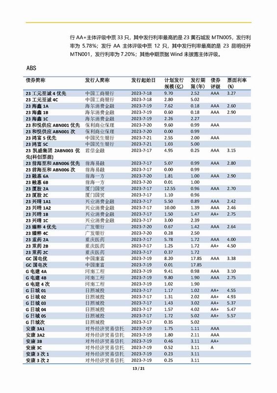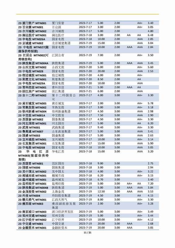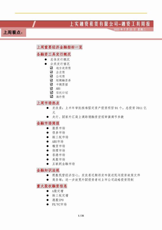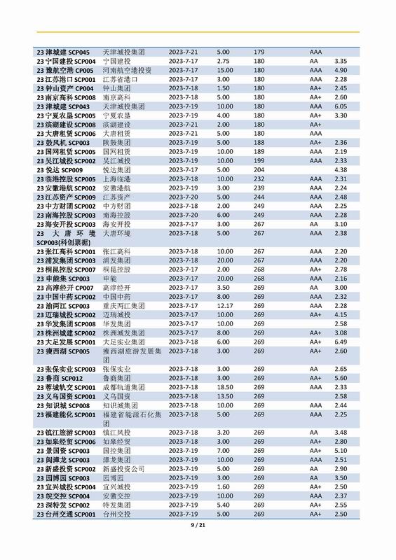 | 當前位置:新聞中心 > 上實-融資工具周報2023.7.17-2023.7.21 | |||||