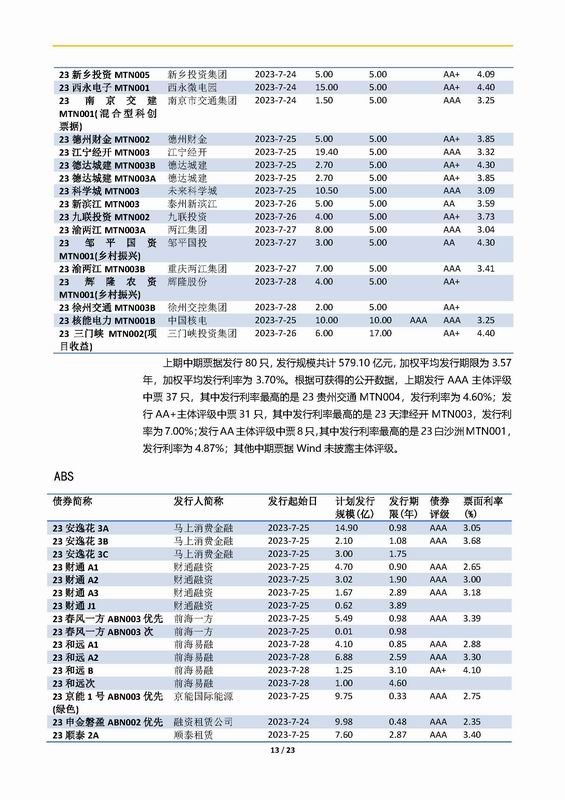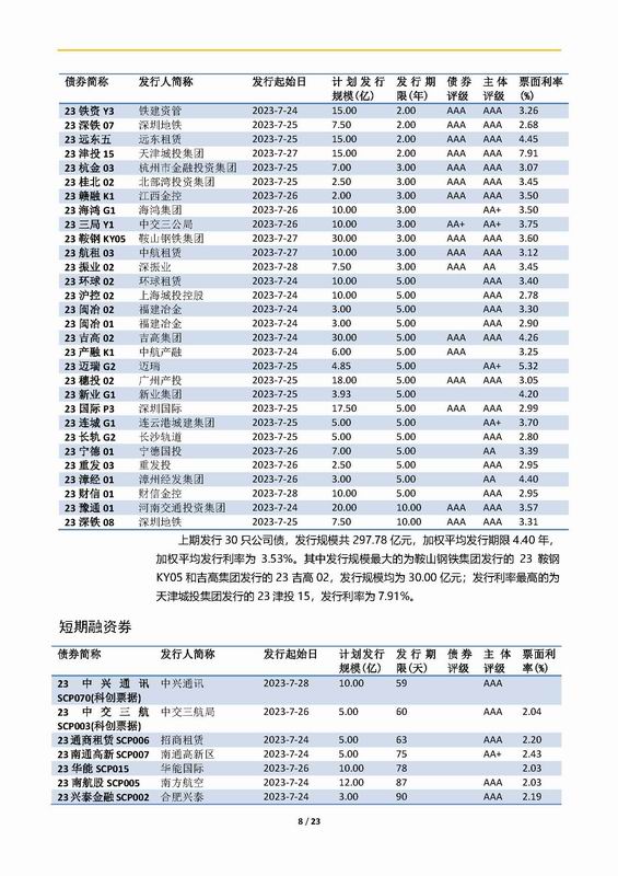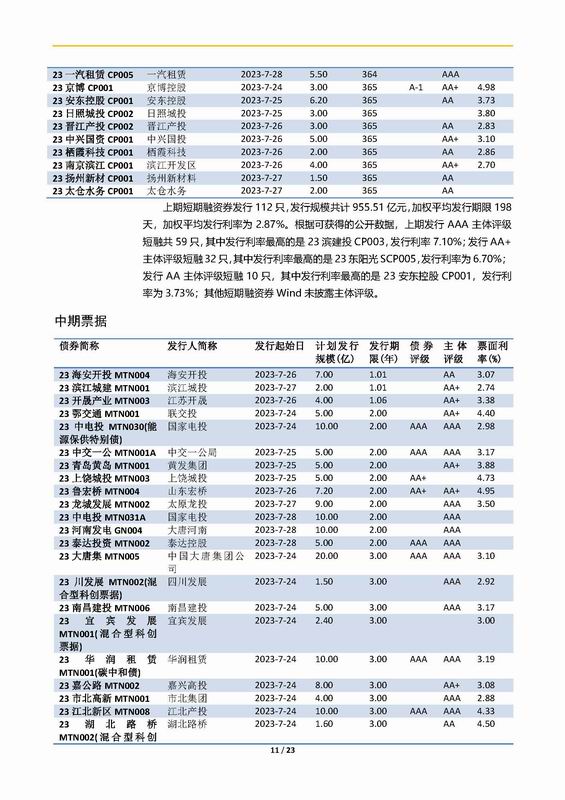 當前位置:新聞中心 > 上實-融資工具周報2023.7.24-2023.7.28