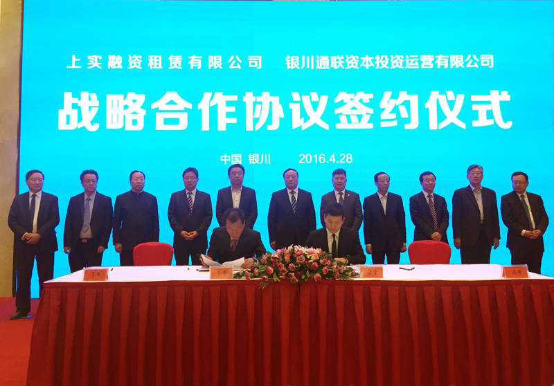 2016年4月28日下午,上實通聯(lián)合作項目、銀川綠地中心等五個重大項目戰(zhàn)略合作簽約儀式,暨“突破與跨越,新常態(tài)下的銀川”主題論壇于銀川市國際交流中心順利舉行。寧夏回族自治區(qū)黨委常委、銀川市委書記徐廣國,銀川市委副書記市長白尚成,銀川市委副書記市委秘書長杜銀杰,銀川市副市長郭柏春,上海綠地(集團(tuán))有限公司董事長張玉良,上實融資租賃有限公司行政總裁曹明等高層領(lǐng)導(dǎo)出席見證簽約儀式。