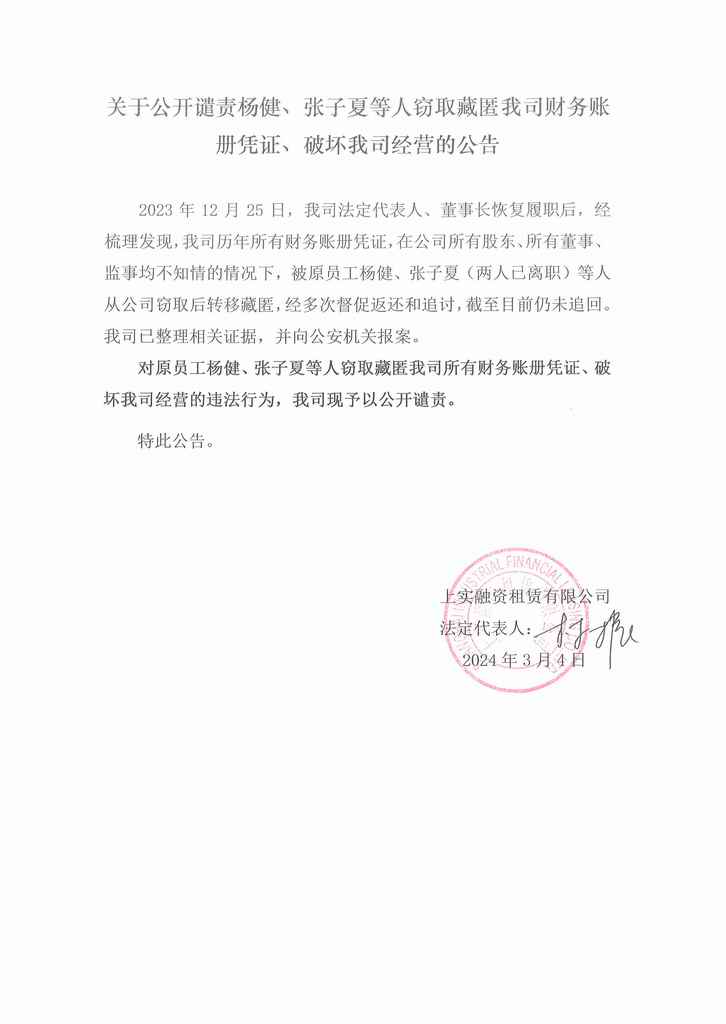 | 當(dāng)前位置:新聞中心 > 關(guān)于公開譴責(zé)楊健、張子夏等人竊取藏匿我司財務(wù)賬冊憑證、破壞我司經(jīng)營的公告 | |||||